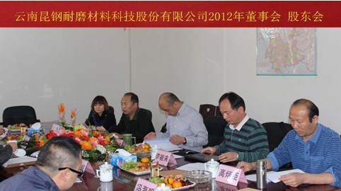 作者:管理員時間:2013-03-242012年3月24日,云南昆鋼耐磨材料科技股份有限公司首屆董事會第七次會議、股東會第五次會議在黑林鋪前街59號團鋼廠院內(原團鋼子弟小學)3樓會議室勝利召開。會議由董事長李亞鵬召集和主持,云南昆鋼重型裝備制造集團有限公司董事長兼總經理黃開萬、昆明新云欽耐磨材料總廠董事長馮煥欽、昆明理工大學材料科學與工程學院院長蔣業華等......